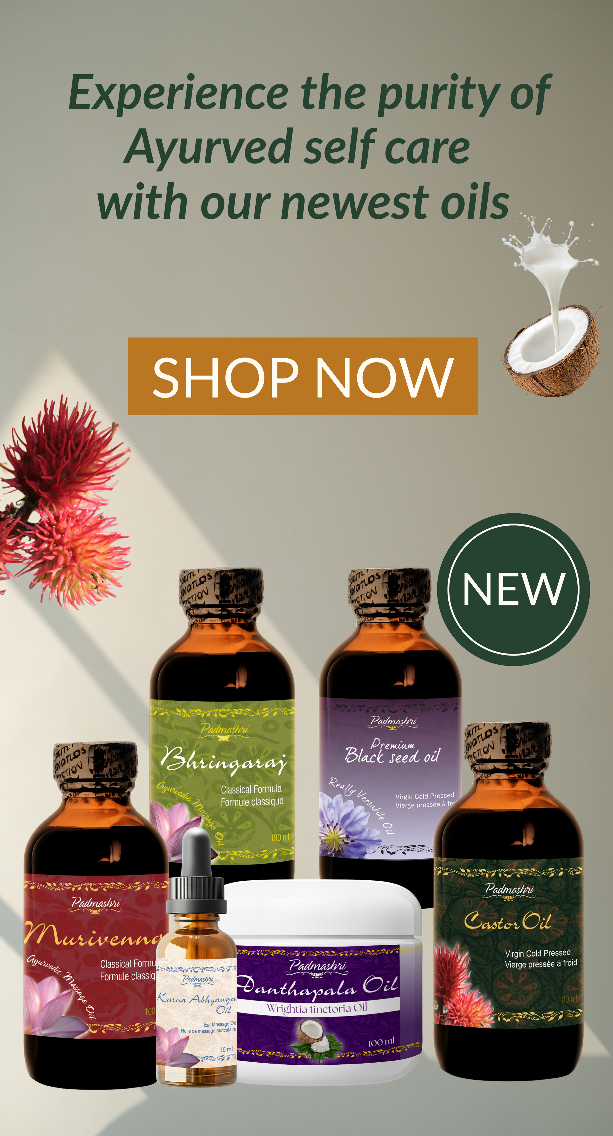 Nos huiles de massage sont lentement décoquées avec de l'huile de sésame, de l'huile de noix de coco, des herbes, des racines et des minéraux à une température douce de 60 degrés dans des récipients en cuivre pendant 30 à 45 jours pour extraire l'essence de la plante entière - un processus éprouvé utilisé dans l'Ayurveda depuis des siècles. à des fins spirituelles et des remèdes maison.
