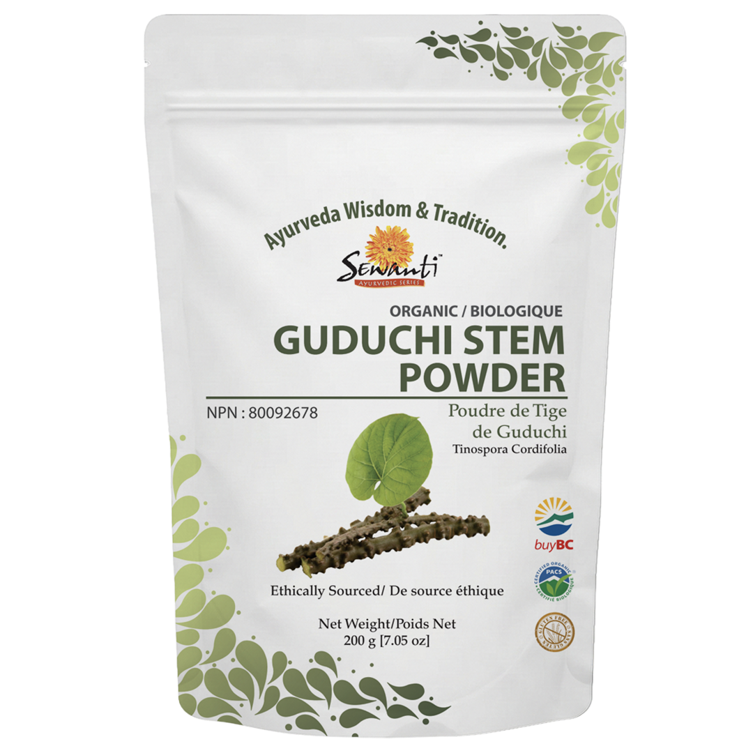 Guduchi is commonly known as “Giloy”, is one of the most respected herbs in Ayurveda. It is highly appreciated by the authors of Ayurvedic texts and so they call it “Amrit” or “Divine Nectar”. Guduchi is used in herbal medicines/ Ayurvedic medicines as an adaptogen to help increase energy (immunity booster), and resistance to stress.