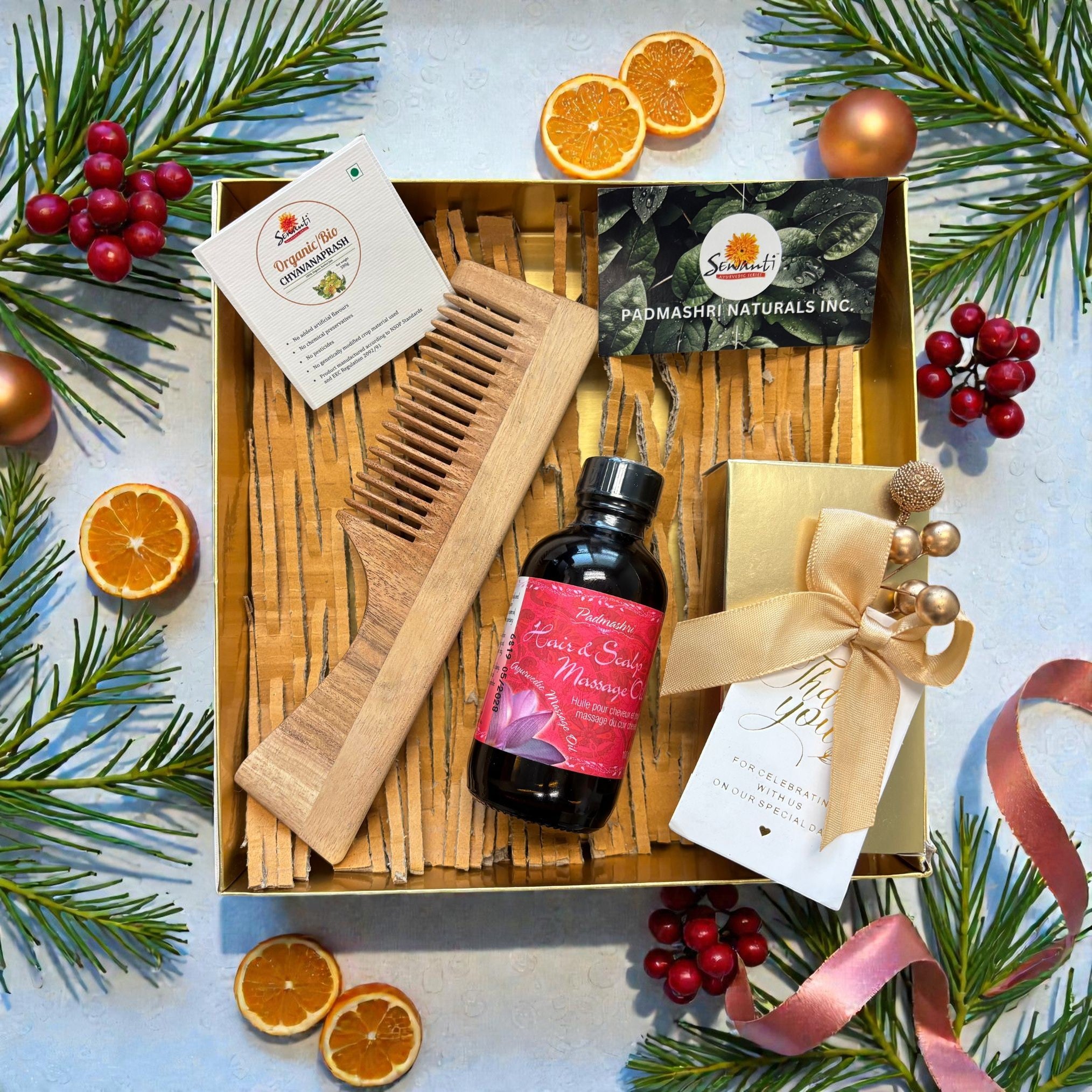 Give the gift of a good hair day. This calming ritual nourishes the scalp, softens strands, and brings back that healthy shine. Paired with a handcrafted Neem Comb for gentle detangling and scalp massage, it’s a thoughtful pick for anyone who could use a moment to unwind or just wants their hair to behave this winter.
